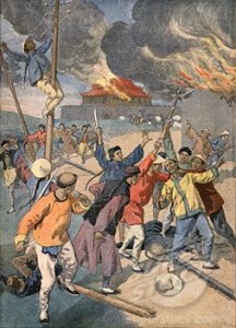 The movement started out as an effort to rid China of Christian missionaries, who were annoyingly aggressive in winning converts (often disparaging ancient worship practices). Rumors of foreign witchcraft didn’t help reputation of the foreign devils whose tall churches “block the sky.” Floods and droughts became attributed to their meddling. Later, the movement grew to become more generally anti-Western.
