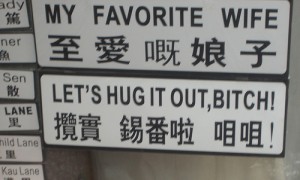 But my point is, it’s all in good fun. I can only imagine the gut-busting reactions of Chinese people if I was in charge of translating signs into Chinese (permanently displayed on public street signs). For all I know, there are Chinese websites out there making fun of hilarious signs found in Chinatowns around the world.