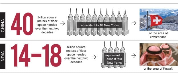 “[By 2025,] 40 billion square meters of floor space will be built…requiring the construction of between 20,000 to 50,000 new skyscrapers (buildings of more than 30 floors) — the equivalent of ten New York Cities.”