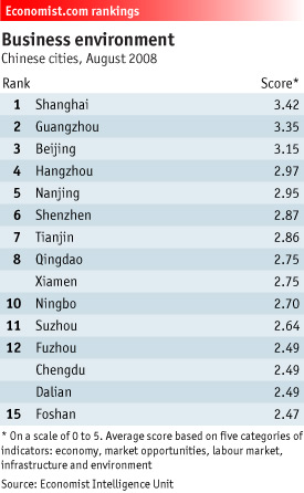 [The Economist “Chinese city rankings: Streets of plenty” Sept. 2, 2008 ]