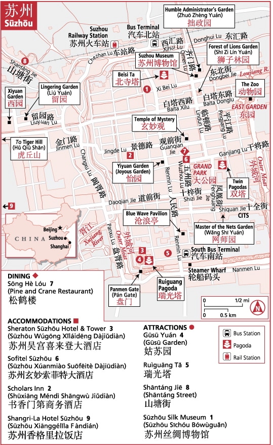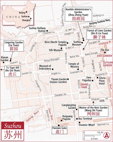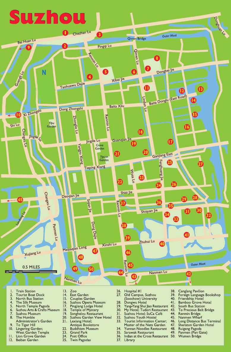 Free printable Suzhou, China tourist maps (right-click to enlarge or print):