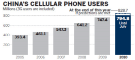 China’s mobile phone penetration rate is only about 53%–considerably lower than the global average of 67% in 2009.